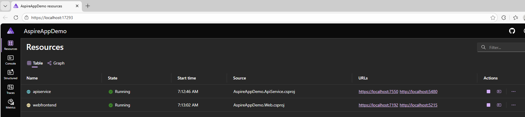 - Aspire Dashboard: A real-time interface to view logs, telemetry, and service health.