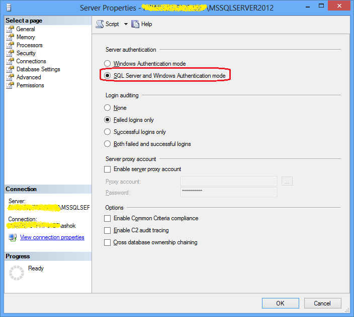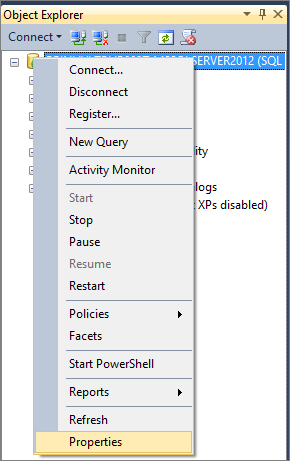 Open SQL Server Management Studio > Login with Window Authentication mode > Right click on object Explorer Server Name > Select Properties